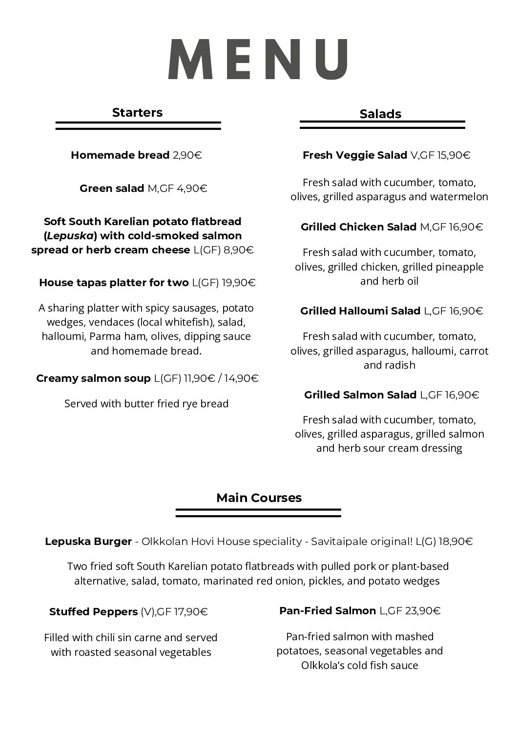 Table reservations: or +358 50 555 5862