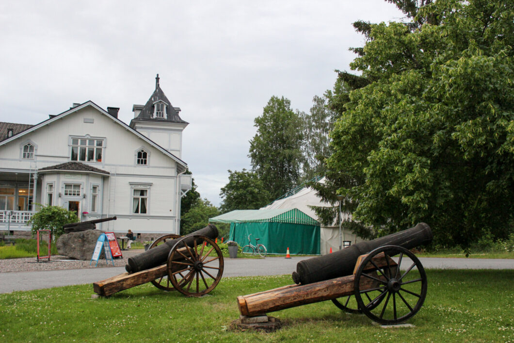 Olkkolan Hovi Kesäteltta -event tent offers live music, dining, and lakeside fun during the summer season.